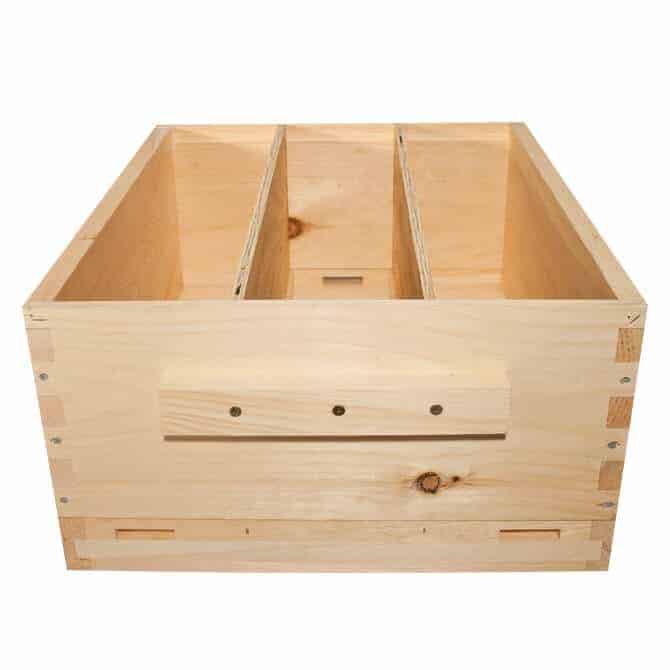 The medium 3-way nuc box includes two 3/8″ plywood partitions to form the three sections.