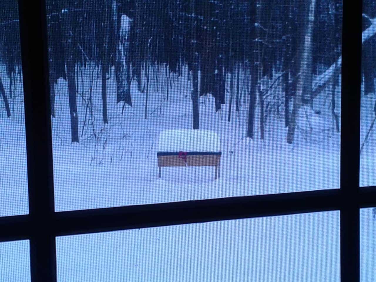 Keeping the interior of the hive dry is incredibly important. During the warm months, bees are able to control the climate, including humidity, but not so in the cold. Dampness is death for bees. I had no idea how much the wind and rain swirl in my yard. I though that with the hive cover and with the hive positioned so it’s somewhat protected by trees the rain wouldn’t get in. I was wrong, but I didn’t know it yet.