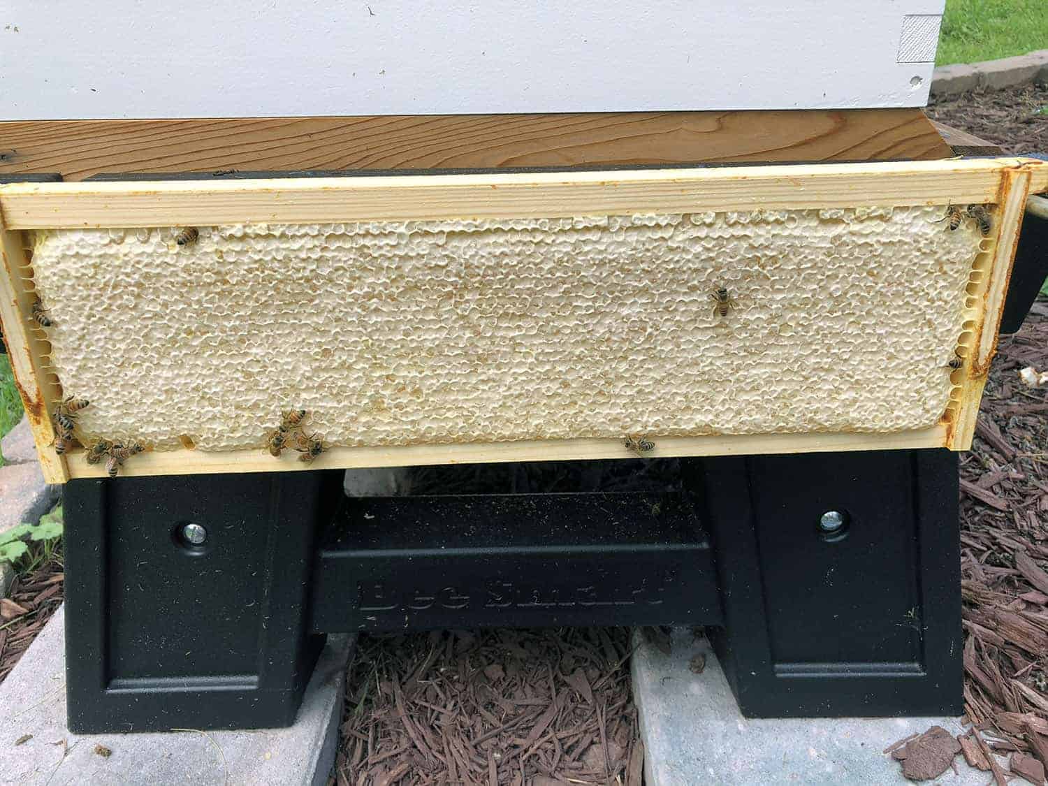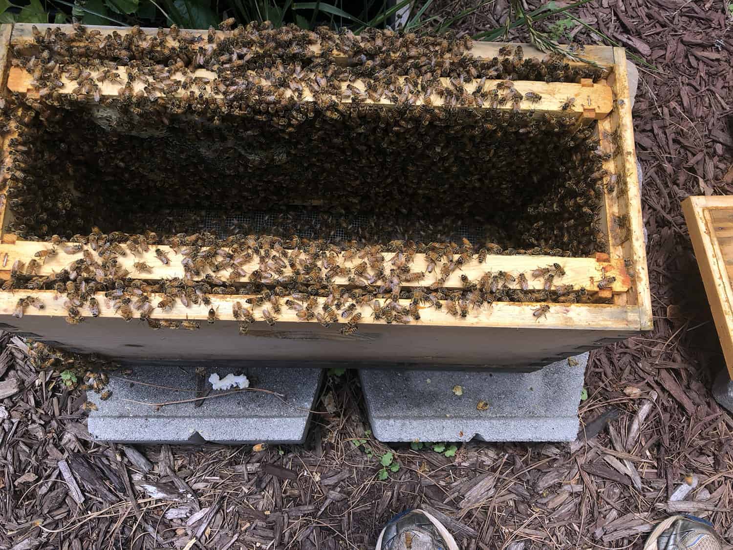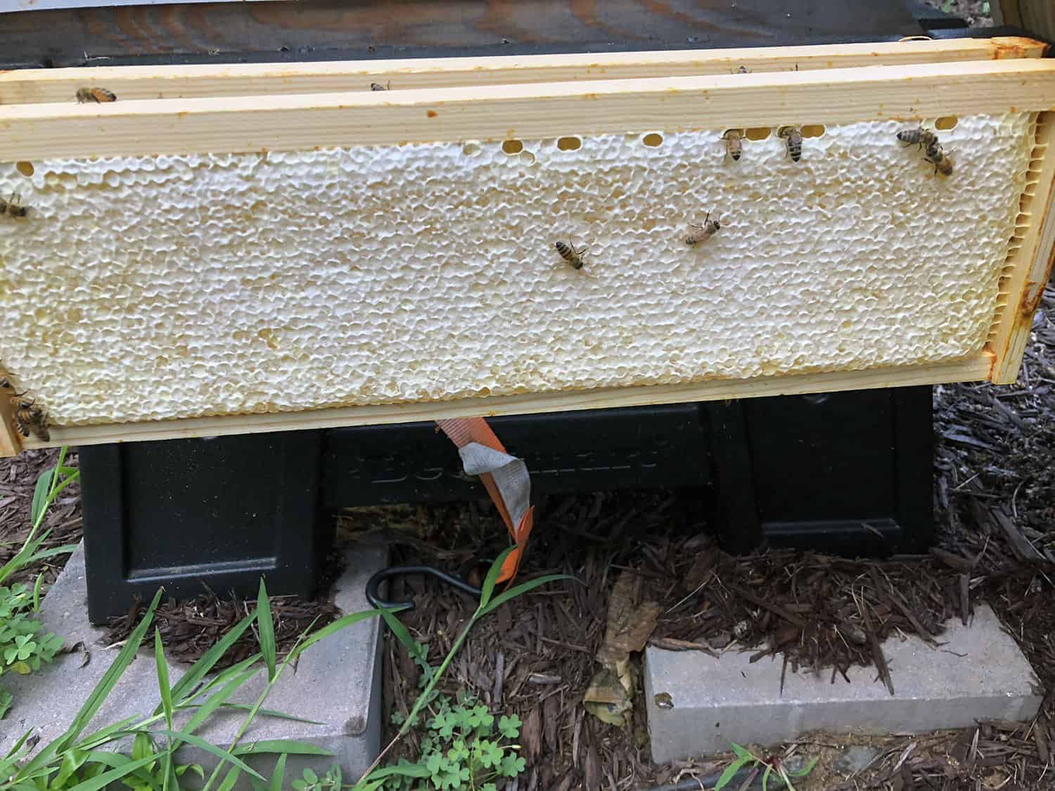 Just like Hive Florence, this colony had built tons of burr comb between the medium and upper brood boxes. And similarly, it was a multi-hour job of cleaning up the mess. But with that accomplished, I found a very happy queen wondering around creating a solid brood pattern and keeping this colony humming along.