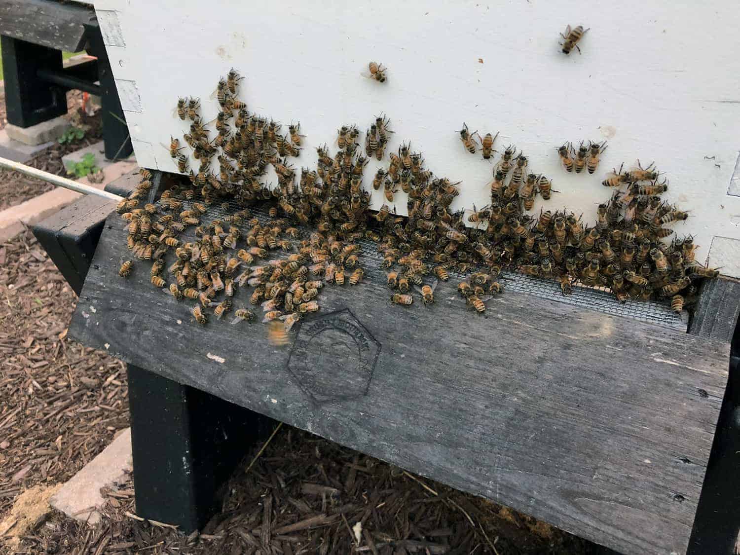 This colony is easily the largest colony I have in my apiary, with the bees frequently seen in the evenings congregating at the entrance looking out at their keeper (see the picture of the masses of bees!). I love this queen. She is a dark, dark chocolate brown and very active wondering around the frames. Again, this colony didn’t strengthen in time to take advantage of the much abbreviated chance at a honey flow but did create some honey. It just wasn’t capped and available for removal. I ended up letting the colonies rob the small amount of honey that was present.
