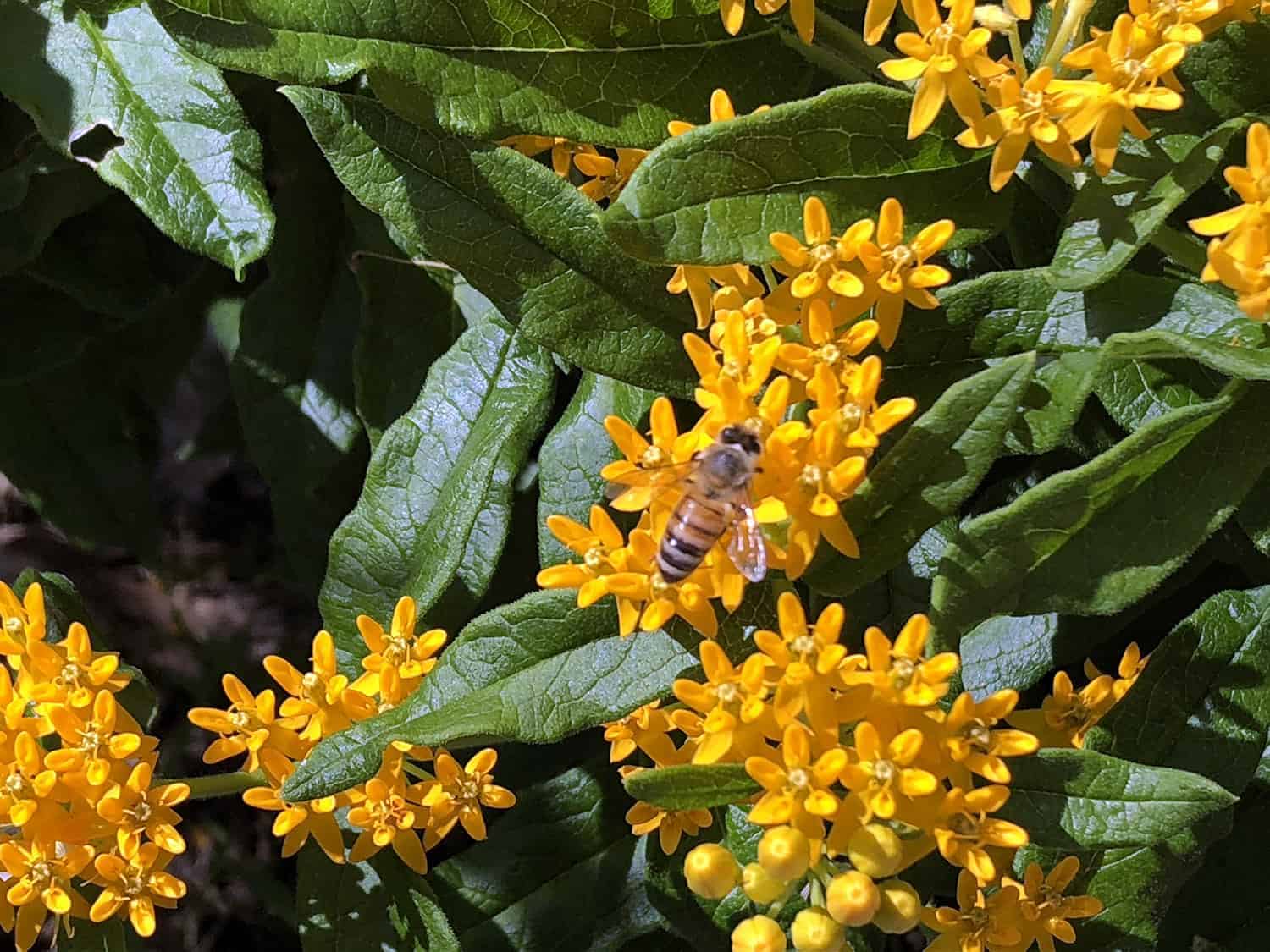 But, there are also significant amounts of wildflowers all around the area covered by the hives as well as the constant visits they made to my yellow and orange milkweed. Milkweed is said to produce a very sweet honey and, as this honey is quite sweet, I know that at least some of that came from my own milkweed plants.