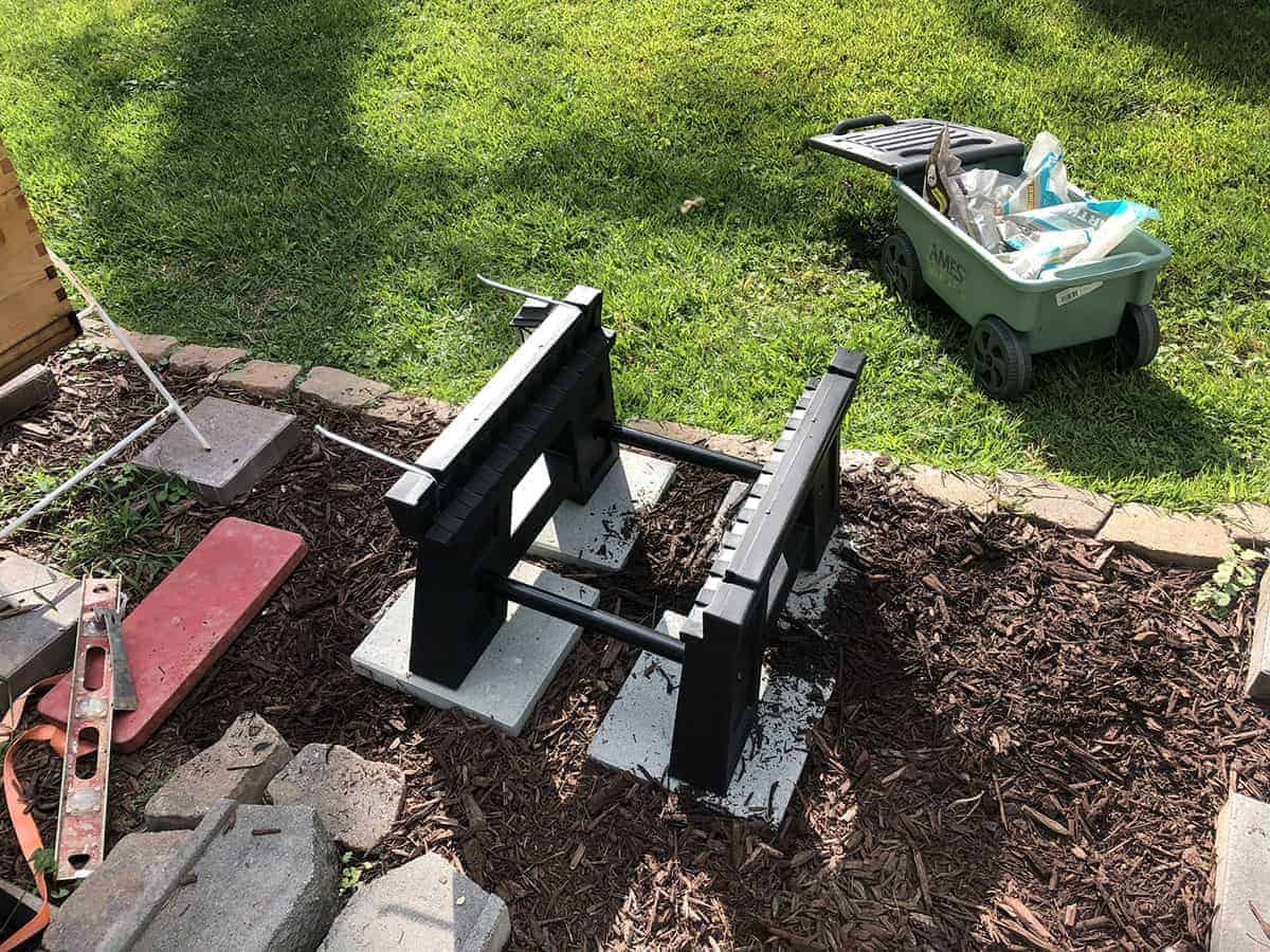 Working with pebbles and a level, I managed to get them near level.  With that task accomplished, I positioned the Ultimate Hive Stand and checked it to see that everyone was still near level (and it was!).