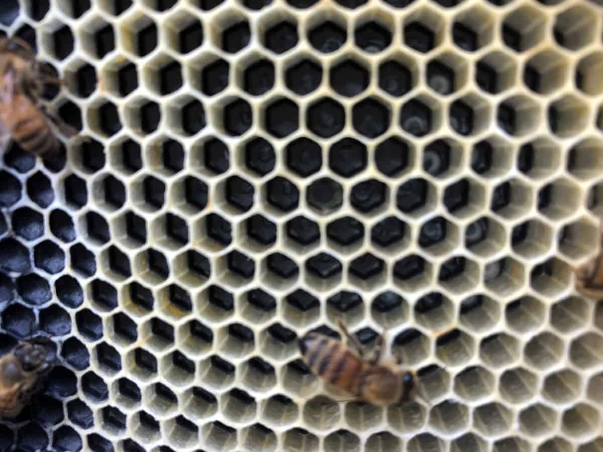 As I went through the remaining four frames in the upper nuc box, I found more and more frames with eggs, larvae and capped brood.  All of these discoveries were incredibly encouraging and illustrate what a healthy queen can do in just a short period of time.  I have included some pictures of eggs and larvae to illustrate what is developing in Hive Wales.
