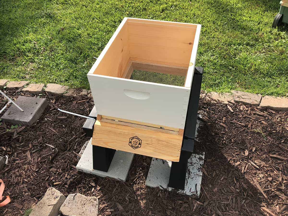 I secured the wooden hive stand to the Ultimate Hive Stand with the provided screws.