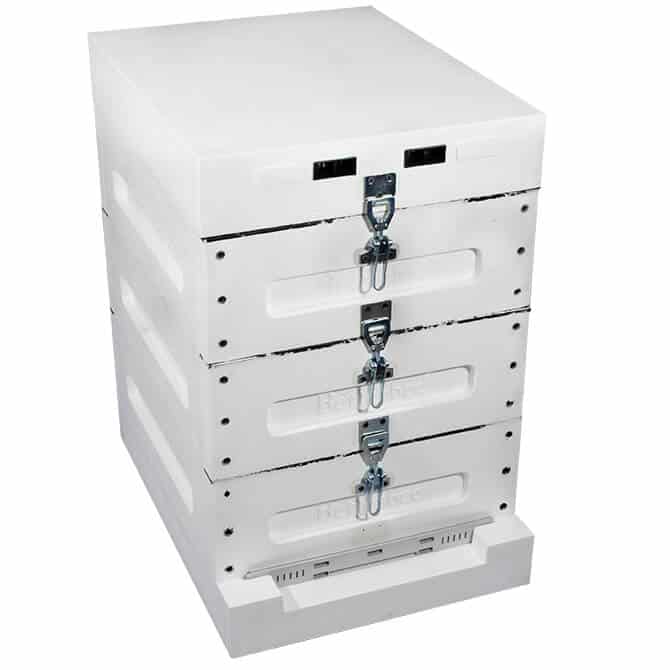 Langstroth polystyrene 10-frame beehive with all medium boxes, manufactured by highly respected Lyson in Poland. Boxes come assembled and this kit comes with all components necessary to start a colony.