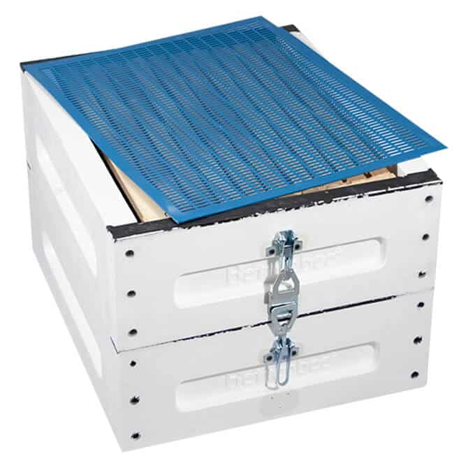 Our super kit makes provides an all in one option to easily add space atop your hive. The kit features two pre-assembled medium supers(with latches included), your choice of frames, and a queen excluder to keep your honey free from brood.