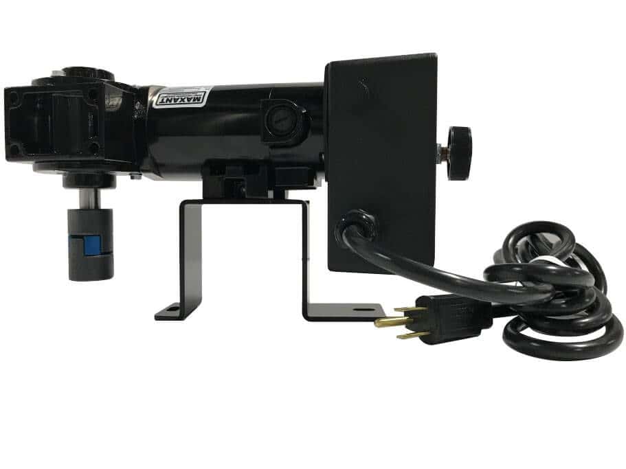 This motor and gear reducer can replace your Maxant 3100H manual extractor‘s hand crank assembly. The motor setup quickly connects to the extractor’s 1/2″ shaft with a coupling.