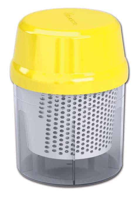 The inner cartridge holds the sample of bees and allows the mites to fall through to the outer section, where you can easily count the mite load.