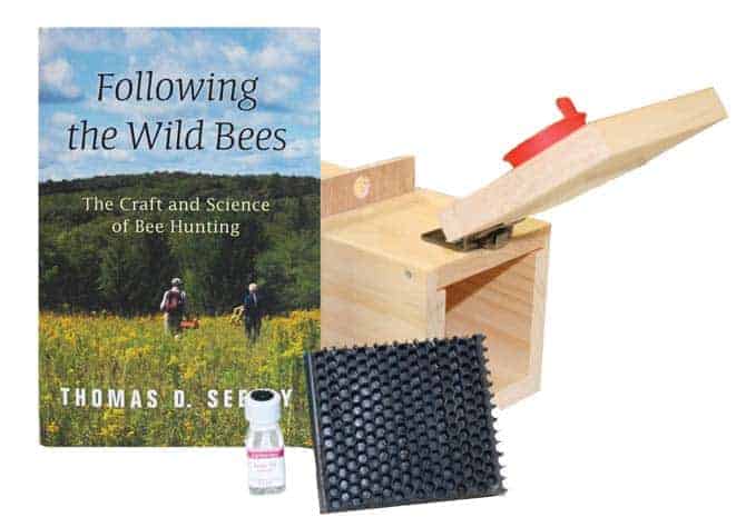 To use the Bee Lining Box, the bee hunter captures a forager on a flower in the hinged end of the box. Honeycomb with anise scented syrup is placed in the second compartment and the captured bee is allowed to enter. The bee discovers the rich nectar source, loads up and heads for the bee tree or hive.