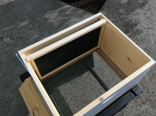 Once your bees stop accepting sugar syrup, you may then open up this upper entrance as an additional entrance for your bees.