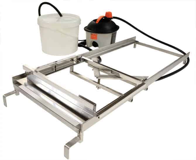 A fast and simple way to uncap your beehive frames! Sits on top of your uncapping table for easy use.